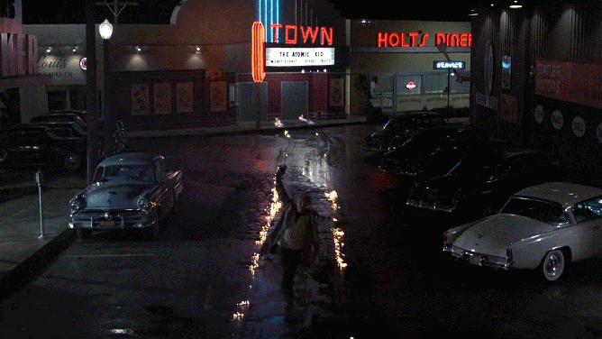 What FUTURE doesn’t often get enough credit for is the set design of Hill Valley: the central square, the malt shop, the clock tower; in three time periods it looks fully realized and fully developed so that the changes in time periods feel convincing.