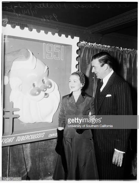 Christmas seal campaign luncheon, 14 November 1951. Sherman Asche, Seal Chairman;Walter Pidgeon;Debra Paget;Claire Trevor.. (Photo by Los Angeles Examiner/USC Libraries/Corbis via Getty Images)