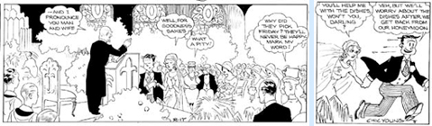 It was after the marriage of the disinherited blissfully happy Dagwood and the carefree vivacious Blondie took place that audiences truly warmed to their humorous domestic escapades. Blondie and Dagwood became a happy family whose troubles reflected those of the readers’ in many ways. The couple started their married life penniless, as were most during the Depression, which lent itself to many enjoyable scenes. First Dagwood’s need to find work made great stories and eventually so did his relationship with his boss Mister Dithers. However, the charms of Blondie the strip relied on the couple’s home life and its place in the pantheon of all things domestic comedy, which was a revolutionary one at that as Chic Young insisted that the young Bumsteads share a double bed, not the twin beds audiences saw on all other domestic stories in media. (loc.gov) In fact, the Bumsteads did not share a bed in their movie incarnations.