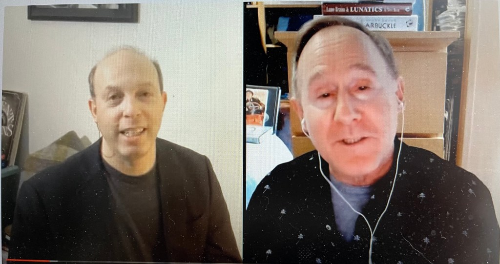 I find myself taking pictures during The Silent Comedy Watch Party every week so I can share on social media. This is one of them showing co-hosts Ben Model and Steve Massa during a December 2020 episode.