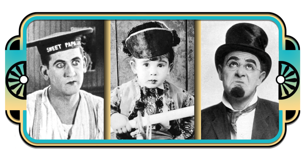 Graphic by Marlene Weisman for the Sunday March 14, 2021 episode featuring shorts starring  Baby Peggy, Ford Sterling and Paul Parrott.