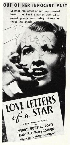 The evening screenings promise to be memorable. Constance Bennett in one of her earliest starring roles plays a woman with a sordid past in Maurice Campbell’s Wandering Fires (1925). Finally, Love Letters to a Star (1936) has an interesting premise, a young woman commits suicide after being blackmailed for having written indiscreet love letters to a movie star. This one was directed by M. Carruth and stars L. R. Foster, Henry Hunter, Ralph Forbes and Polly Rowles.