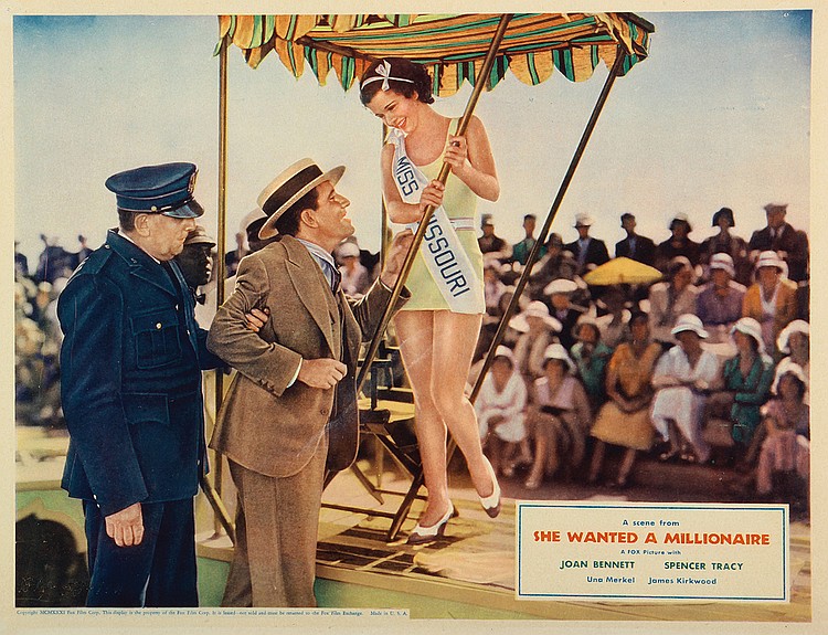 John G. Blystone’s She Wanted a Millionaire (1932) with Joan Bennett, Spencer Tracy, Una Merkel, and James Kirkwood about a woman who marries a millionaire only to find out he is less than stable, sounds rather enjoyable. This is one of four movies Bennett made with Spencer Tracy and the only one in which she is billed over him.