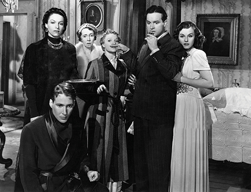Bob Hope and Paulette Goddard paired for the first time in Elliott Nugent’s The Cat and the Canary, a 1939 remake of Paul Leni’s 1927 silent adaptation of John Willard’s 1922 play. Willard’s play also inspired, among other productions, 1930’s The Cat Creeps and its Spanish-Language counterpart, La Voluntad Del Muerto. For our 1939 production, Universal sold the story to Paramount who cast Hope and Goddard at the top of their game. Hope was starring in two popular comedies released in 1939, Elliott Nugent’s Never Say Die and George Archainbaud’s Some Like it Hot. He was also about to begin his road picture journey alongside Bing Crosby with the first release in the series, Road to Singapore in 1940. Goddard, on the other hand, was working on Chaplin’s The Great Dictator and had Cukor’s The Women showing in theaters across the country when The Cat and the Canary was released.