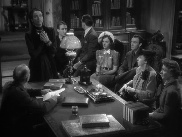 The Cat in the Canary tells the story of a group of first and second cousins twice removed who gather in an old mansion located in the bayous of Louisiana for the reading of Cyrus Norman’s will, Cyrus is the millionaire relative who died ten years prior. Cyrus’ will is very specific about when and who was to gather for the reading. You have the executor of the will, Mr. Crosby (George Zucco), and Cyrus’ surviving relatives: Joyce Norman (Paulette Goddard), Fred Blythe (John Beal), Charles Wilder (Douglas Montgomery), Cicily Young (Nydia Westman), Aunt Susan Tilbury (Elizabeth Patterson), and popular actor Wally Campbell (Bob Hope). Finally, there is Cyrus’ former housekeeper and lover, Miss Lu played to great effect by Gale Sondergaard.