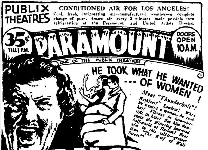 Fast forward to 1922, which proved an important year for theaters across the country with the unveiling of a compressor that allowed smaller theaters to compete with the palaces. There is no way for me to understand or explain the intricacies of air conditioning systems, but I do understand that prior to 1922 only a 3,000—seat movie palace could afford the cost of the huge cooling system that existed. The Carrier Engineering Corporation installed the first ‘modern’ cooling system for theaters at the Grauman’s Metropolitan Theater in Los Angeles. This system pumped cool air through high vents to control humidity throughout the building. The installation at Grauman’s Metropolitan is considered by many the birthplace of theater air conditioning even though updated systems were being installed in other cities as early as 1924 – following the Chicago installation. This article explains how air conditioners made it into Baltimore theaters for example. The real test came three years later at the Rivoli Theater in New York, however, “until the new system played on Broadway, it could not really be considered a success.”