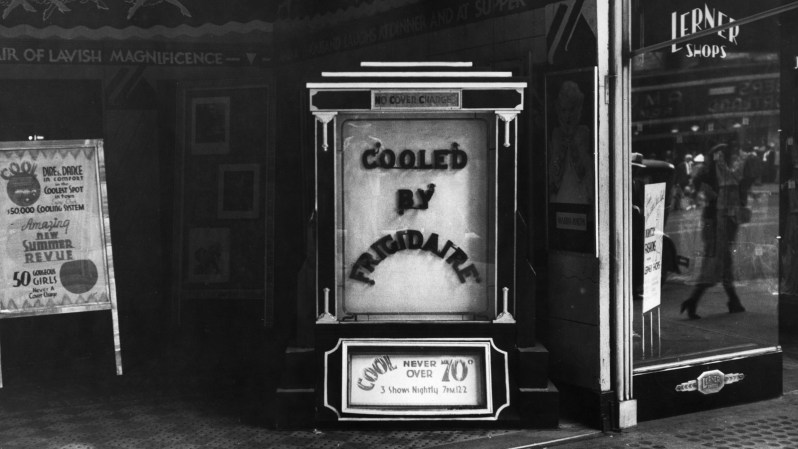 According to the National Weather Service, the worst heat wave ever in the United States happened in 1936. That year still holds several heat-related records. While most of us take air conditioning for granted today with nearly 90% of American households using air conditioning, there was a time when they were a luxury few could afford. For instance, inventors H.H. Schultz and J.Q. Sherman filed the patent for air conditioning units that could be placed on window ledges in 1931, but people were reeling from the effects of the Great Depression and could hardly afford food. Forget about staying cool at home. It was widespread practice to sleep outside overnight or wet bedsheets in cold water to help alleviate the heat. What little entertainment they could afford happened in movie theaters, which brings us to the story of staying cool at the movies.