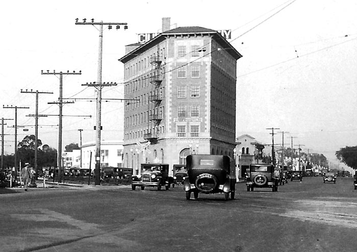 Harry Culver, who founded Culver City, California and played an important role in making the city central to the movies, opened the Culver Hotel (originally the Hotel Hunt), in 1924. Thomas Ince, Hal Roach, Cecil B. DeMille, David O. Selznick, RKO, Desilu and Culver Studios as well as MGM were its neighbors. The Los Angeles Conservancy has some interesting stories to tell about the Culver Hotel, including a list of famous guests as does this article.