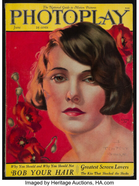 Speaking of bobbed hair – as the 1920s progressed, stories about whether to bob or not bob were seen frequently in fan magazines. A bit scared by judging eyes in religious circles, the most popular, serious stars resisted flapperdom as long as they could. By 1924, however, they were on the bobbed hair bandwagon. Still, it was a battle. Husbands divorced their wives, shocked husbands shot themselves, and the price of bobbing hair made headlines. Upkeep for Norma Talmadge’s bob cost her $15 a day. Lucky Gloria Swanson paid only about $5 a month because she chose the straight bob look. Other stars spoke out about their bobs too because bobbed hair was a phenomenon. Hair salons opened across the country in droves because of this hair style. In 1920, there were 5,000 hairdressing shops in the United States. At the end of 1924, 21,000 shops had been established—and that didn’t account for barbershops, many of which did “a rushing business with bobbing.” (Smithsonian Magazine) Bobbed hair was all over the news. There was even a Bobbed Hair Bandit, a 20-year-old laundry worker from Brooklyn who went on a spree of armed robberies along with her husband. You can see some of the bobbed Hollywood stories in this video, The Battle of Bobbed Hair from Photoplay in 1924. Glamour Daze also dedicated this article to the fascinating bobbed hair trend.