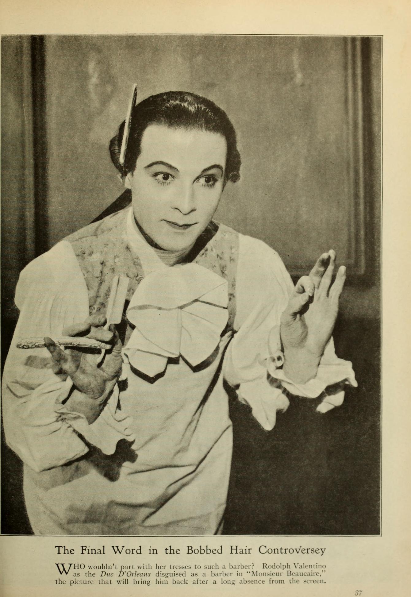 Valentino was unhappy with the way his career was being managed by Paramount on the West Coast. In July 1923 he signed a new contract to make pictures in New York. However, he only made two films at the Astoria studio before he returned to the West Coast, Monsieur Beaucaire directed by Sidney Olcott with Bebe Daniels, and Joseph Henabery’s A Sainted Devil, both in 1924. (Look at the final word in the bobbed hair controversy)