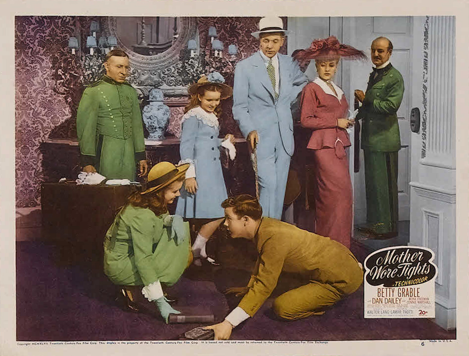 Betty Grable is at her peak in Mother Wore Tights, stunning in Orry-Kelly costumes and she has plenty of opportunity to sing and dance, both of which she was quite good at. In support of its biggest star, Fox hired Dan Dailey straight out of WWII service. Metro-Goldwyn-Mayer, where Dailey was employed before the War, did not renew his contract so Dailey signed with 20th Century Fox and, as a born song-and-dance-man was a perfect partner for Grable. She did not know it by the time Tights was ready to go though. Rumors are that both James Cagney and Fred Astaire were possibilities. However, Cagney was not released by Warner Bros., and Astaire wanted to change the script too much in favor of the Frank character. With the title of the movie being Mother Wore Tights, it made no sense to make father the primary character.